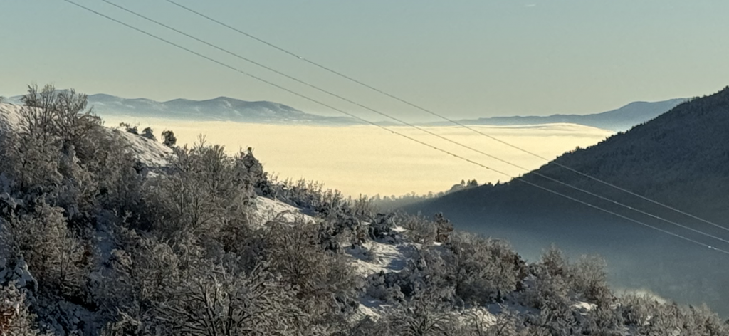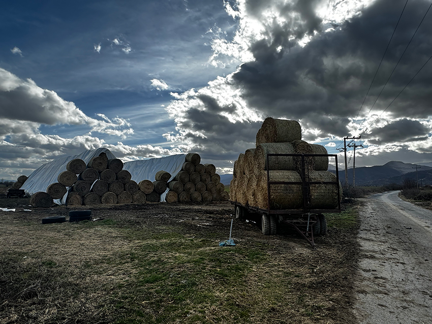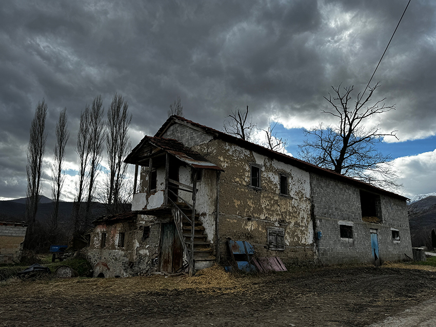 Στα ‘Αλωνα στο νεράκι στη βάση δύο τεράστιων δέντρων, δίπλα από την εκκλησία, σκέφτηκα τις κινήσεις. Μετά ήταν κάποια καρότσια κάποια μηχανήματα που όπως έπεφτε το χιόνι και μια παράξενη ηρεμία που έχει μέσα της τον απόηχο της καταστροφής.
