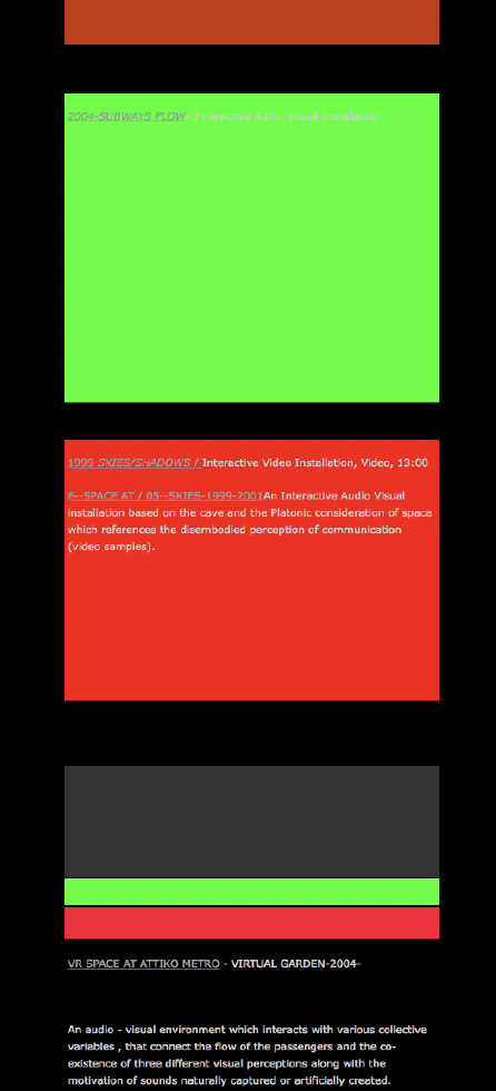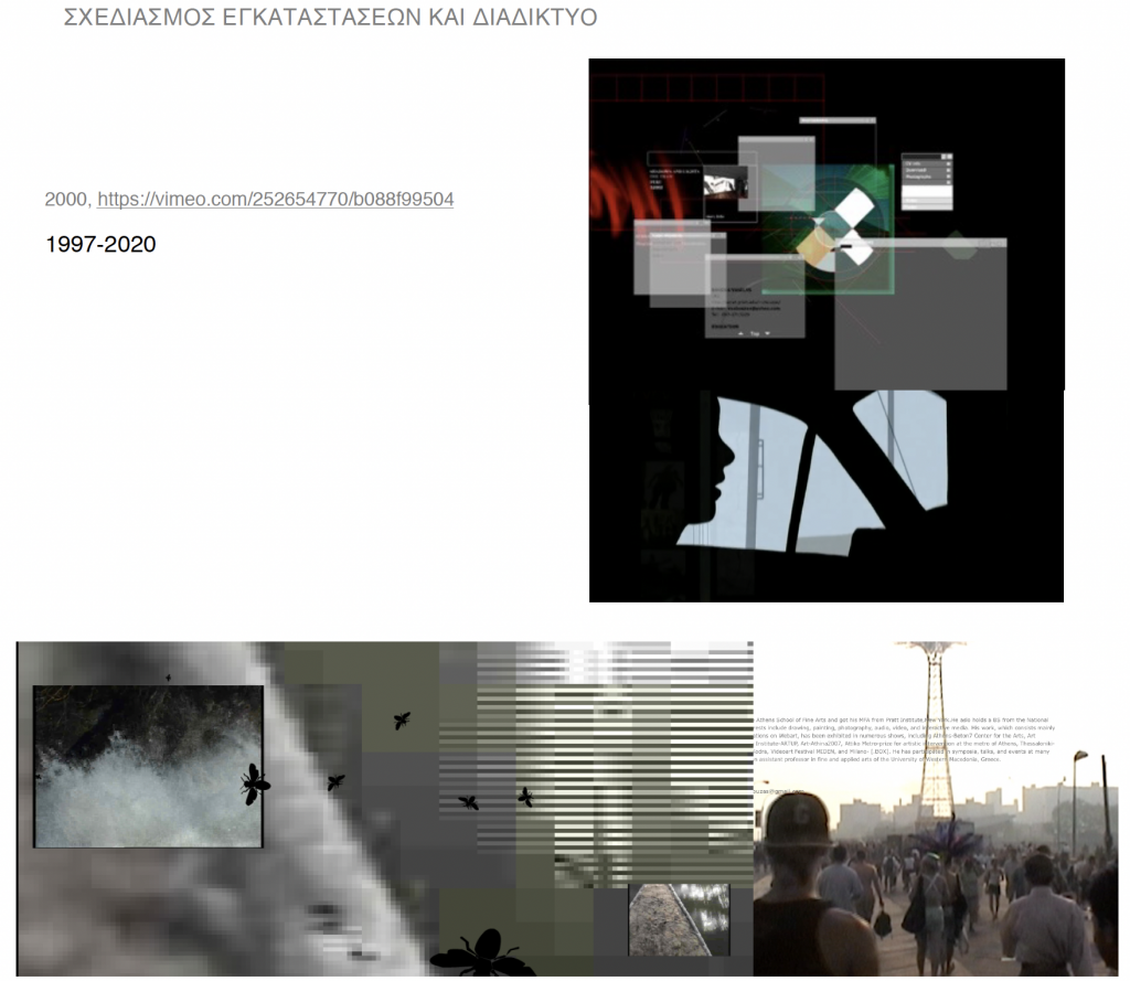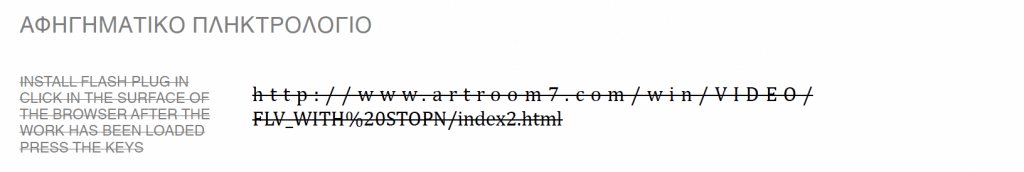 Από το 2001 μεγάλο μέρος των διαδικτυακών παρουσιάσων λειτούργησαν με την ενσωμάτωση του πρωτοκόλλου λογισμικού Flash σε κώδικα HTML. Το λογισμικό Flash καθώς και άλλες παρόμοιες εφαρμογές πολυμέσων που δημιουργούν την «αισθητική Flash»* έχουν χρησιμοποιηθεί από εκατοντάδες καλλιτέχνες παγκοσμίως από το 1997, παρέχοντάς τους έναν μοναδικό τρόπο δημιουργίας κυρίως διαδικτυακών διαδραστικών έργων. Από το 2019, η χρήση του στο Διαδίκτυο έχει ακυρωθεί λόγω ζητημάτων ασφαλείας και διαδικτυακά έργα που χρησιμοποιούν παλιά τεχνολογία αποτελούν μέρος της τεκμηρίωσης δημιουργικών πρακτικών στη σύγχρονη αρχαιολογία των τεχνολογικών μέσων και ειδικότερα σε αυτή που αφορά το διαδίκτυο και την Τέχνη του Διαδικτύου (Internet Art). Ένα μεγάλο μέρος αυτής της ενότητας “Διαδικτυακές Πρακτικές” έχει σχεδιαστεί με την ενσωμάτωση του πρωτοκόλλου λογισμικού Flash σε κώδικα HTML δεν είναι δυνατόν να παρουσιαστεί πλέον στο διαδίκτυο ενώ και σε επίπεδο εννοιών αλλά και σε επίπεδο ανάπτυξης και λειτουργίας αφορά την διαδικτυακή on-line λειτουργία του.
