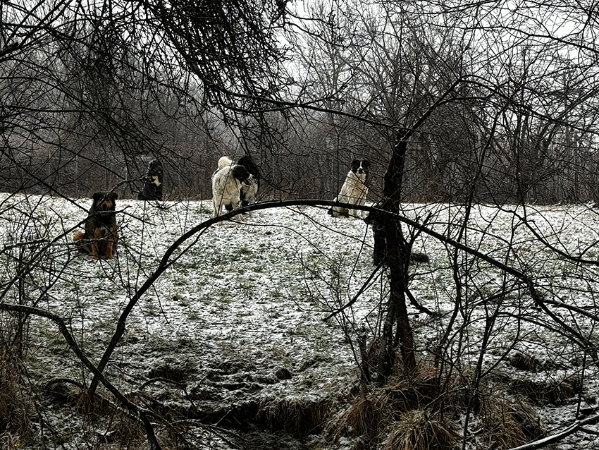 Later, I encountered the six dogs in the snow,