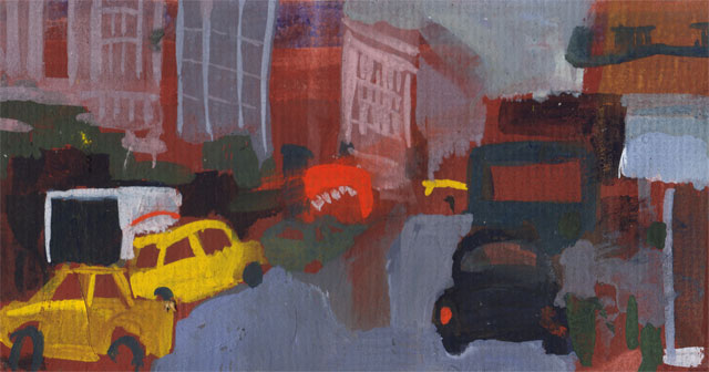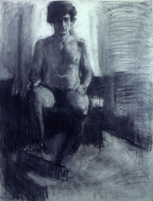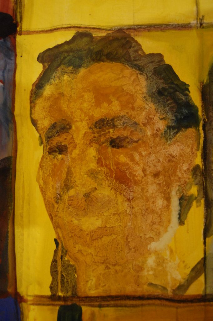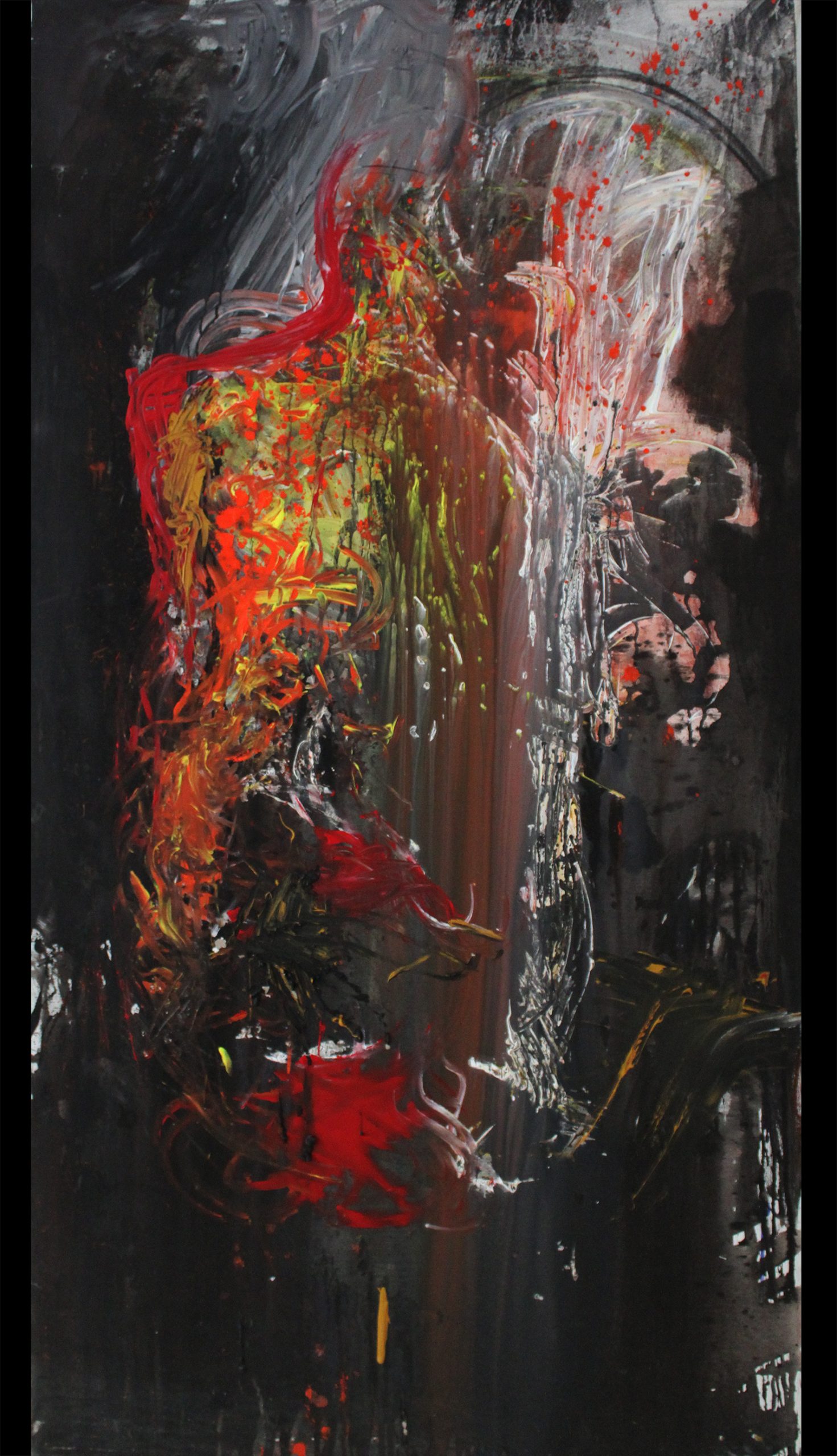 Μεγάλων διαστάσεων “σχεδόν μονο-χρωματικά” τελάρα 3.00 Χ 1.90 μέτρα αποτύπωναν αυτή τη σχέση που ήθελα να έχει το σώμα με το έργο, η κλίμακα του ζωγραφικού έργου με τη φυσική κλίμακα. Οι μεγάλες διαστάσεις αφορούσαν μια ζωτική σχέση του εικονικού με το πραγματικό, μια σχέση που ενέχει και την ύπαρξη του σώματος, τόσο σε επίπεδο κλίμακας απέναντι στη κλίμακα του χώρου του ζωγραφικού εικονήματος ακόμα και αν αυτός είναι χωρίς χώρο η “πλακάτος”, αλλά και σαν εν δυνάμει χειρονομία διαχείρισης αυτού του κόσμου