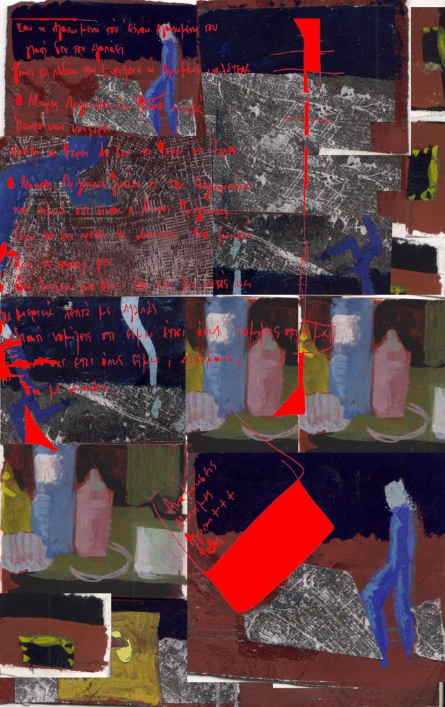 Μέσα από την “ενστικτώδη” ανάπτυξη συλλογικών και ατομικών πρακτικών της σχέσης σώματος, τόπου, φιλοσοφίας , δημόσιου χώρου και με ερμηνευτικά εργαλεία τη φωτογραφία, το collage, τη ζωγραφική, παρήγαγα μια σειρά από έργα που αφορούσαν εγκαταστάσεις στο χώρο , αλλά και ζωγραφικά έργα που άμεσα η και έμμεσα την αφορούσαν.