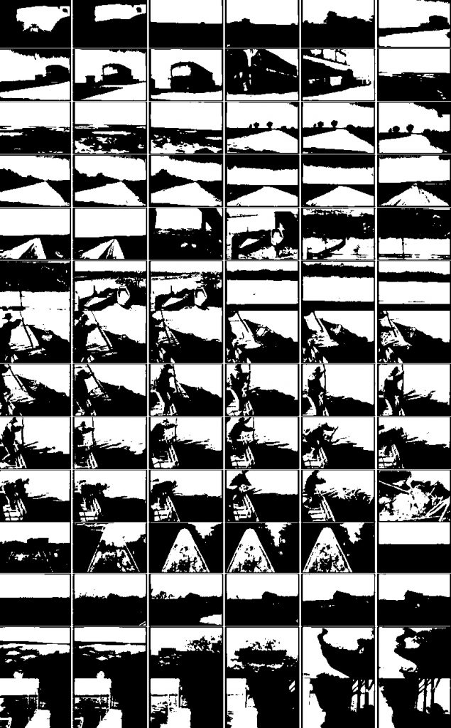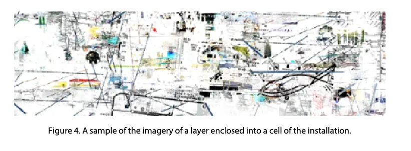 The structures resemble factories, mechanical systems, and rigid efficiency, aligning with the film’s themes of workers vs. elites.