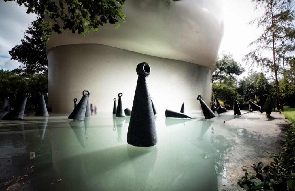 Industrial Materials → Concrete, steel, and glass to reinforce a machine-age aesthetic.